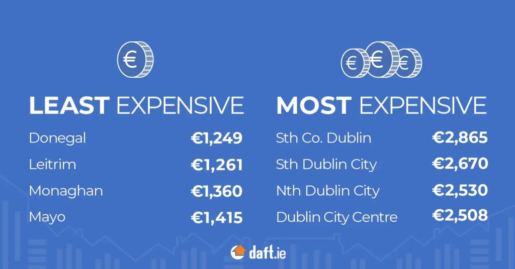 U gradu Corku prosječna stanarina sada iznosi 2,241 euro mjesečno, a u gradu Galwayu 2,295 eura mjesečno, što je porast od 9% u odnosu na isto razdoblje prošle godine.